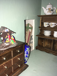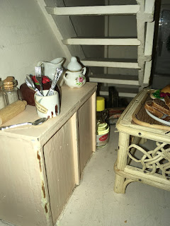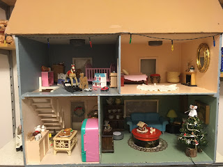 I’m sure I am not alone in my fascination with tiny things. Miniature candlesticks, dolls, china dogs: you can find a tiny replica of anything you can think of. For many the enchantment of a doll house is an extension of this, the little details that bring it to life. I longed for a “proper” doll house when I was a child and enjoyed endless hours playing with the one I did have, made of tin, do you remember? A proper one would have been made of wood with shingles and glass windows. I thought that I might acquire one for my children but I didn’t find it until ten or eleven years ago, too late for my kids but perhaps a grandchild; meanwhile I would enjoy it.