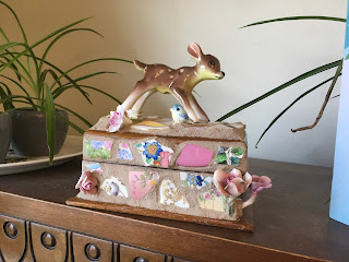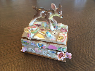 Here is Indre’s mosaic box, which I grouted for her, finally finished today just 24 hours short of the deadline (Quebec). Her design and execution are amazing. She was reluctant to do the grouting, probably because she could see how challenging it is but it was an easy task for my experienced fingers.