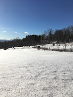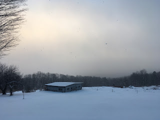 The sun went behind the ridge at 3. It is snowing again. – mumma