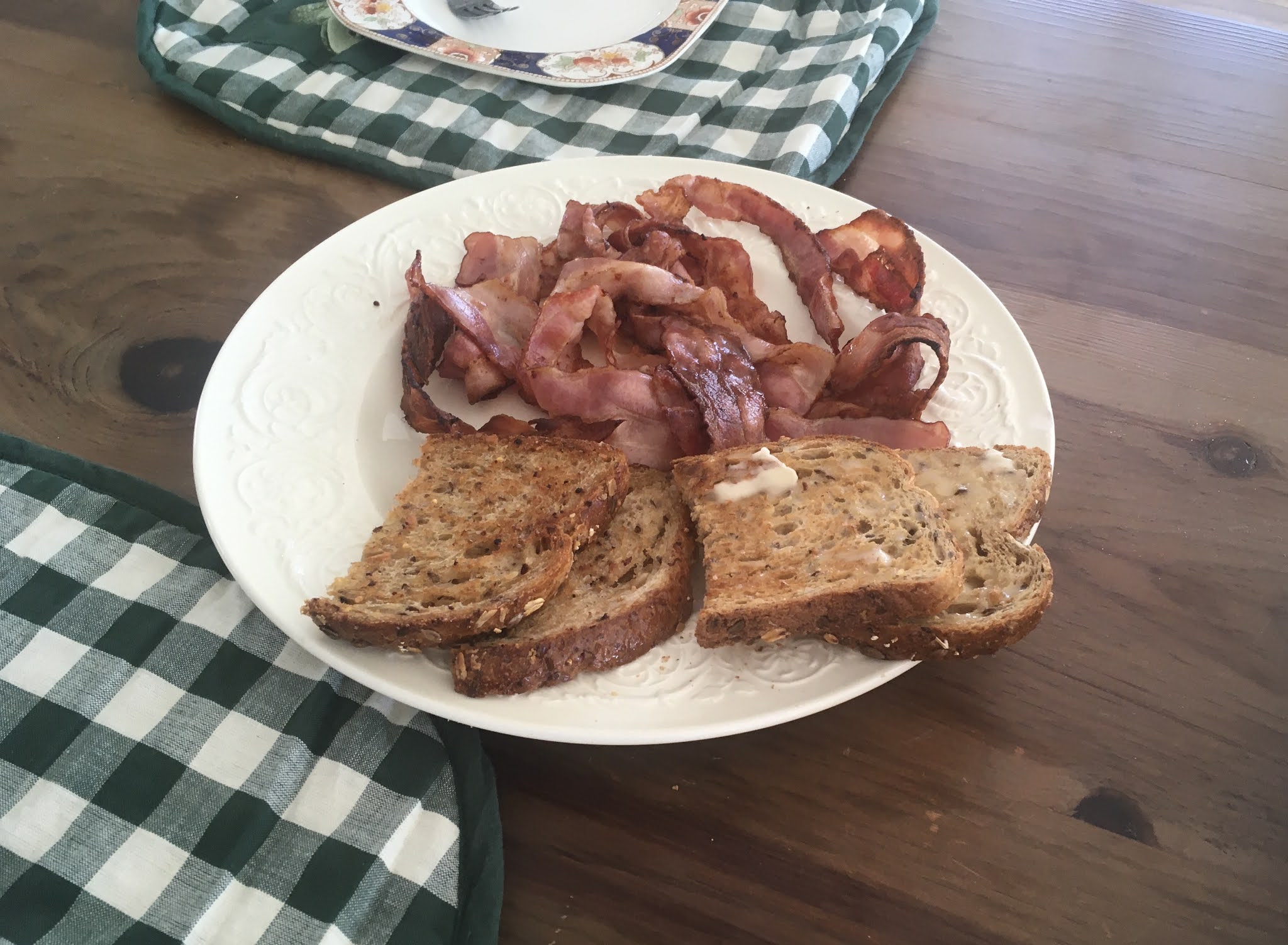Breakfast feast: bacon, buttered toast and fried bread (in bacon fat) like my mother used to make when I was little. These clementines were the sourest ever so I warmed them and tossed them with honey. Still sour! but sweet too.