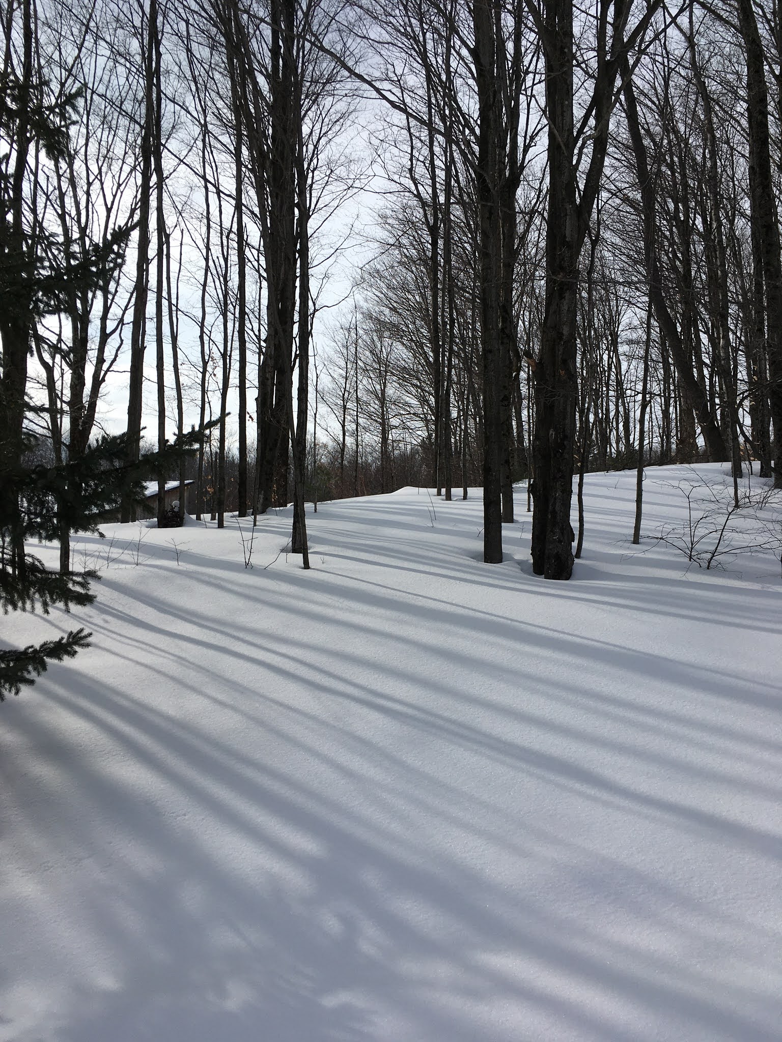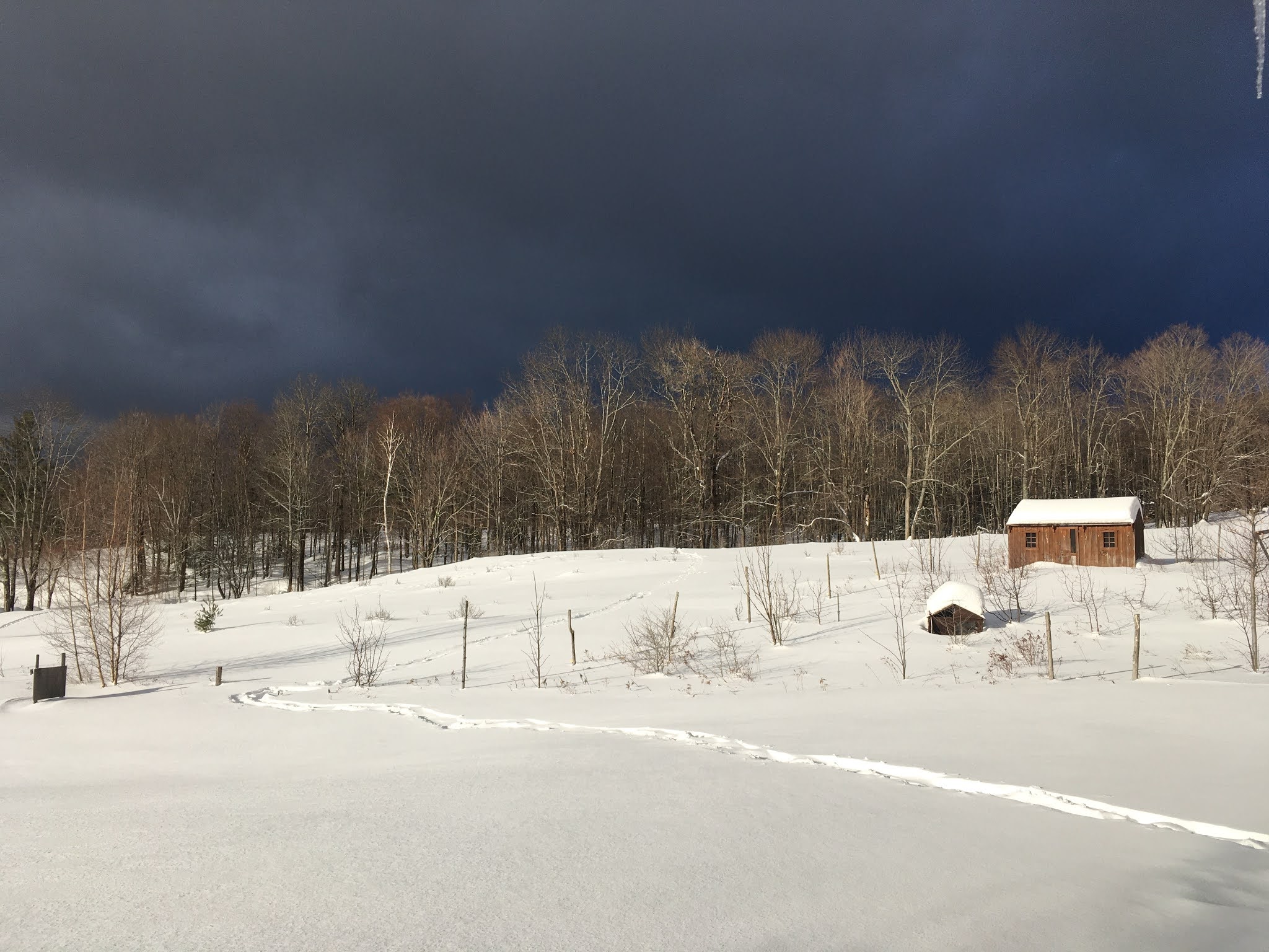 We are over the hill of winter and melting quickly into spring. The tree branches are starting to show colour. This has been the loveliest winter I have spent since I was a child, it seems too soon to see it go. Soon the snow will start to thaw and rivulets will trickle and then rush down the mountain, patches of sleeping weeds will appear and before long wildflowers in the woods. The birds will begin to return and bird dating apps will be the rage. K is having breakfast on the porch in the sun. Last year the Cooper’s hawk was calling for a mate by March 2nd, and the first vultures come north each year by the beginning of March.