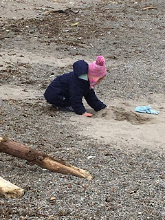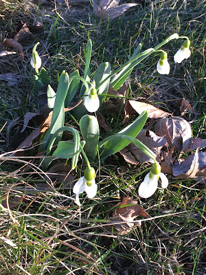 Last year the snowdrops were blooming on March 15, and here is Indre at the beach on March 14, three years ago. She takes after her grandmother; must get in the water.