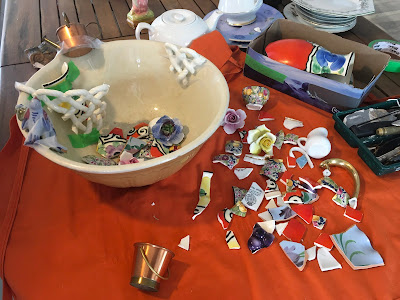 Is there something happening here? Energy sparking! One of the reasons I love this art form is its “found” aspect – it creates itself out of the fragments of still-beautiful but unwanted objects whose beauty is then recycled: transformed and preserved.