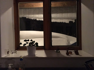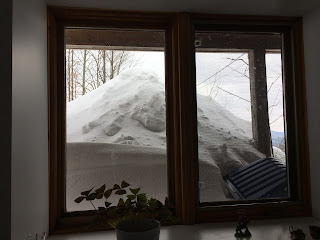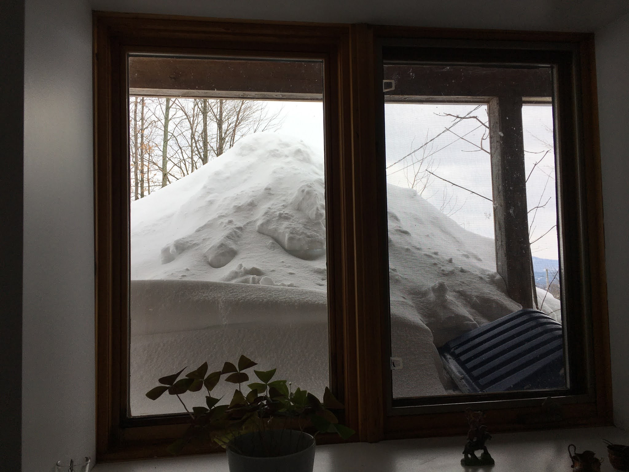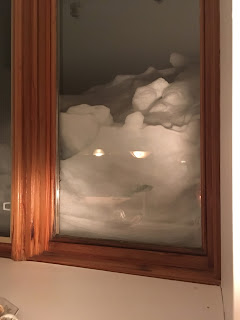 A fierce snow monster lurked outside the window that night and my kitchen window view has lost its serenity.