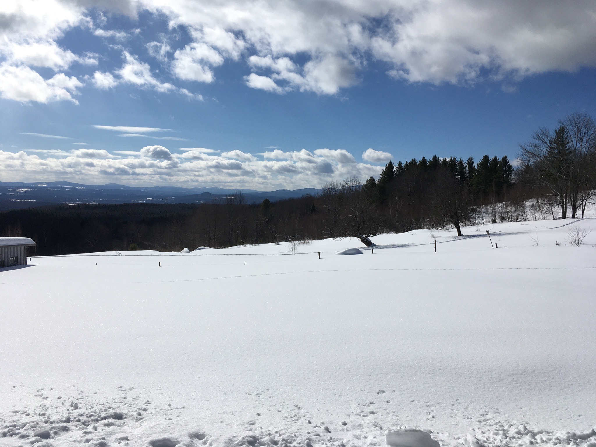 I visited the witches.               Looking up the west meadow – I haven’t been here since the snow fell. This is where the snow blows down from, past us into the valley.