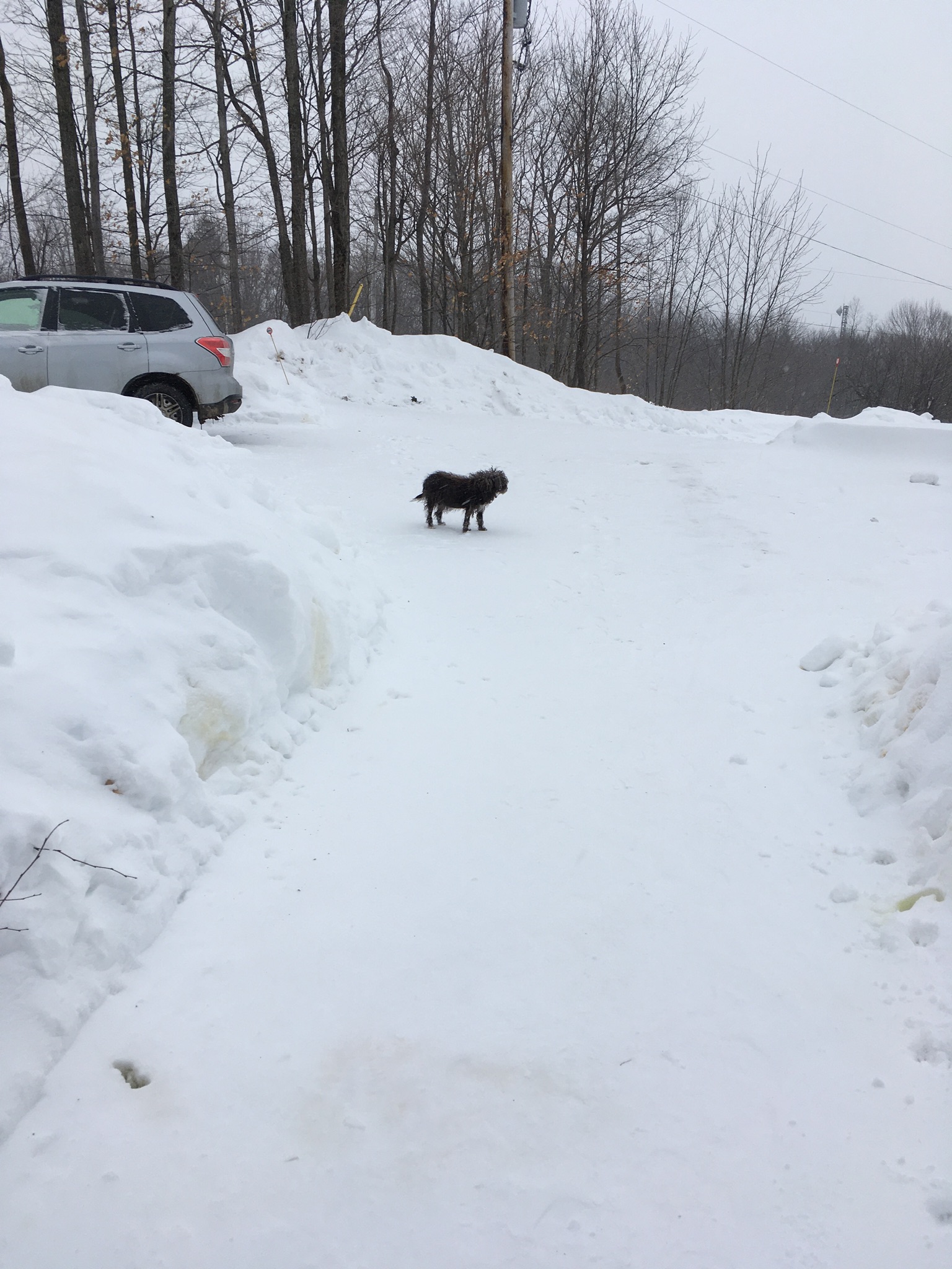 Of course I took Fig out a dozen times to see the day, and Blackie, and to sniff around. He has been enjoying the warmer days, exploring the apron in front of the door and trotting down the drive in search interesting smells. He is getting better at avoiding faceplants and head-bonks; he may be learning to sense the air flow or feel the touch of barricades on his whiskers and fur. I am sure that he is learning to make better use of his sense of smell.