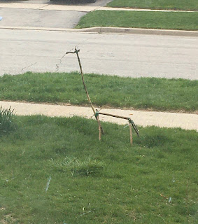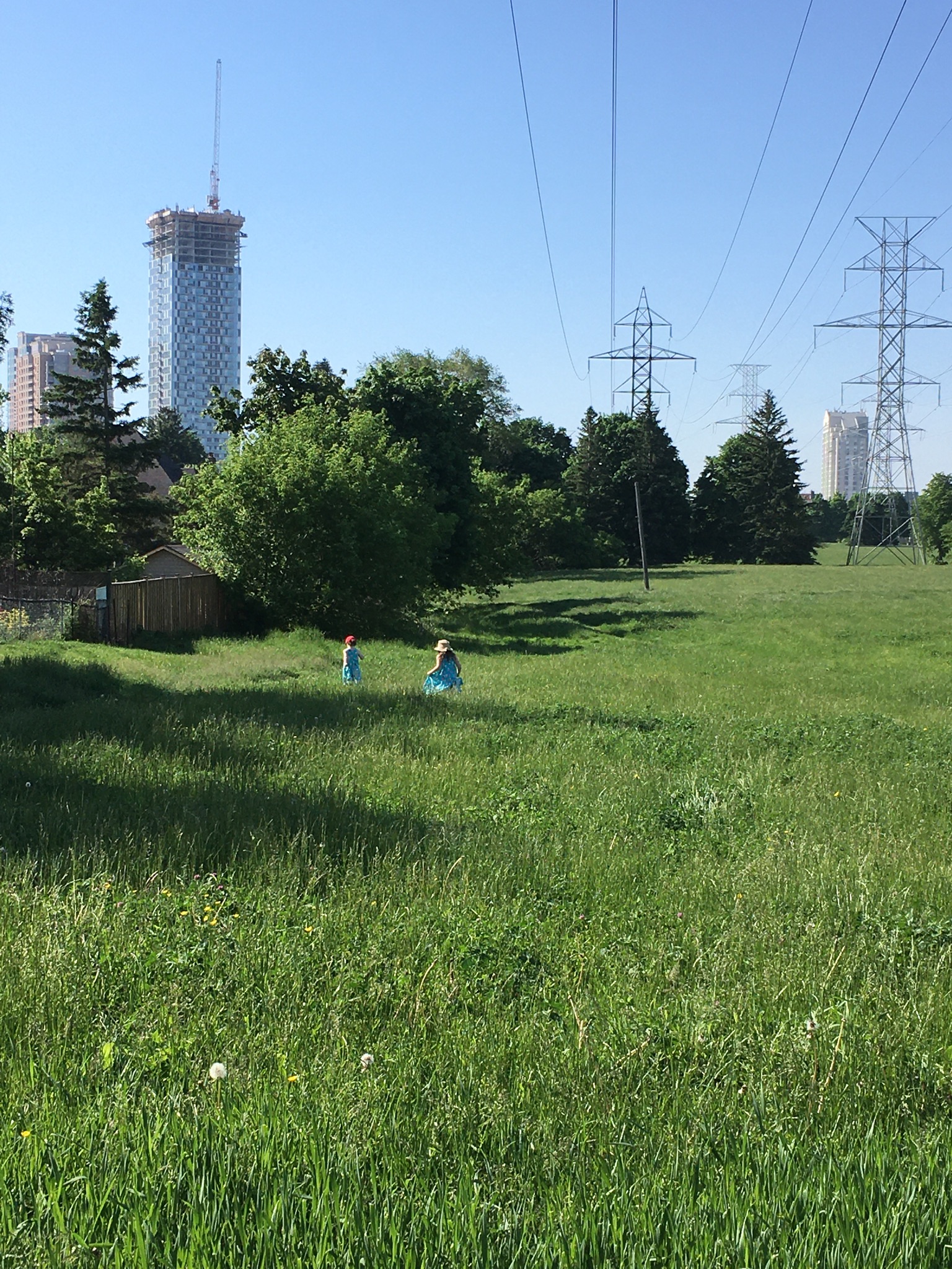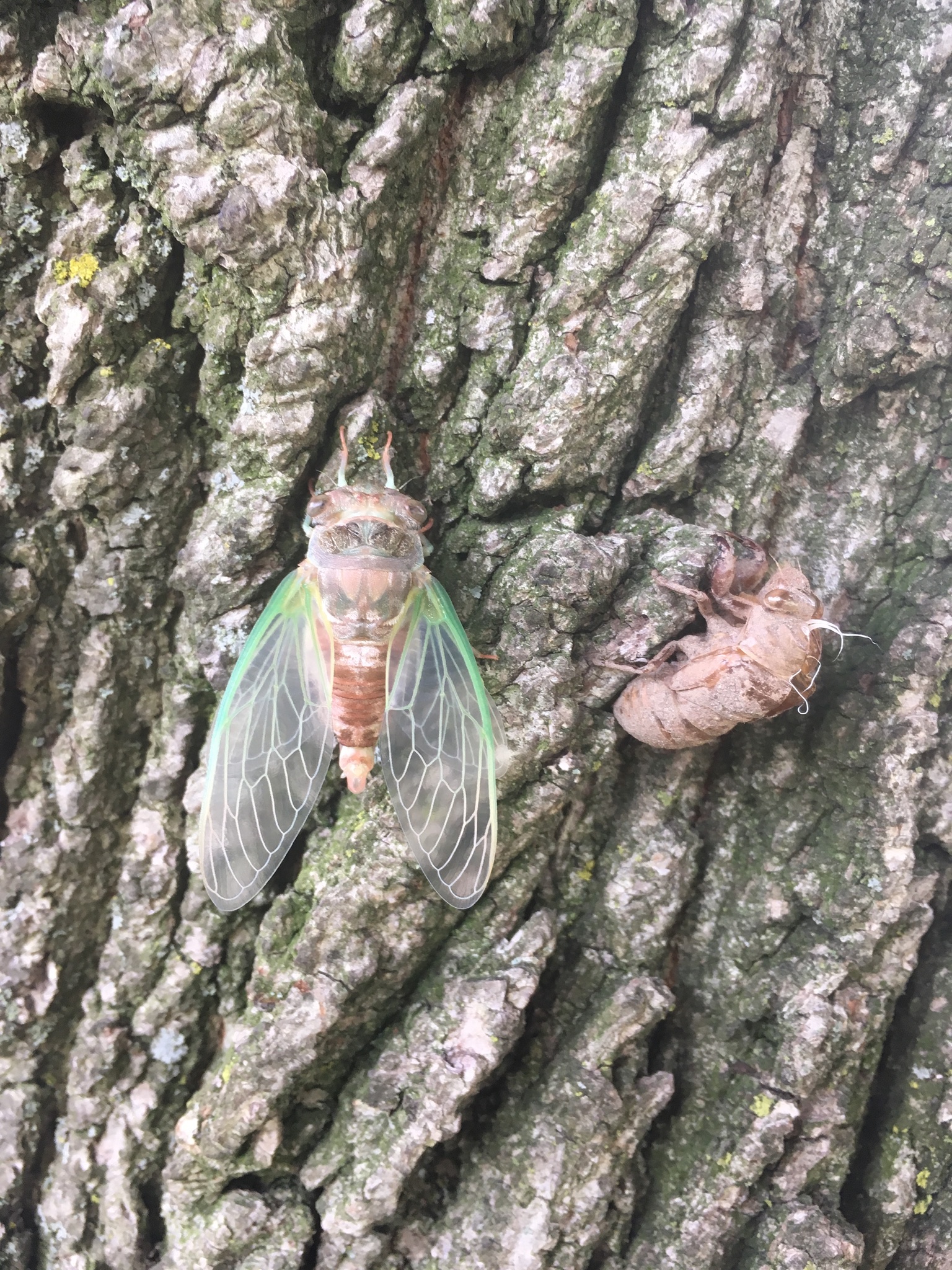 The hydro field is our wilderness.                        A cicada emerges from its chrysalis, on our maple tree.