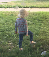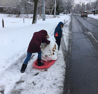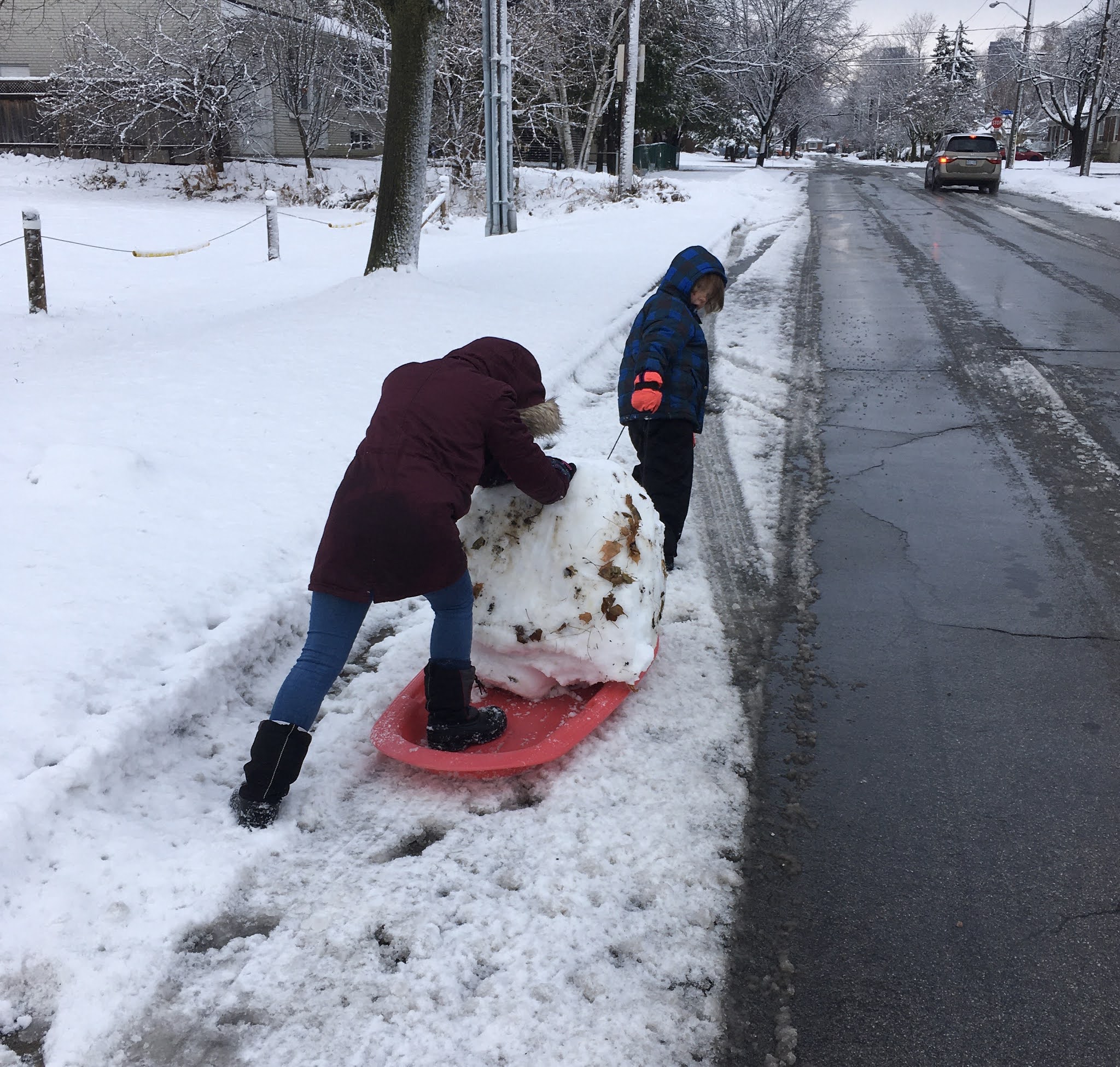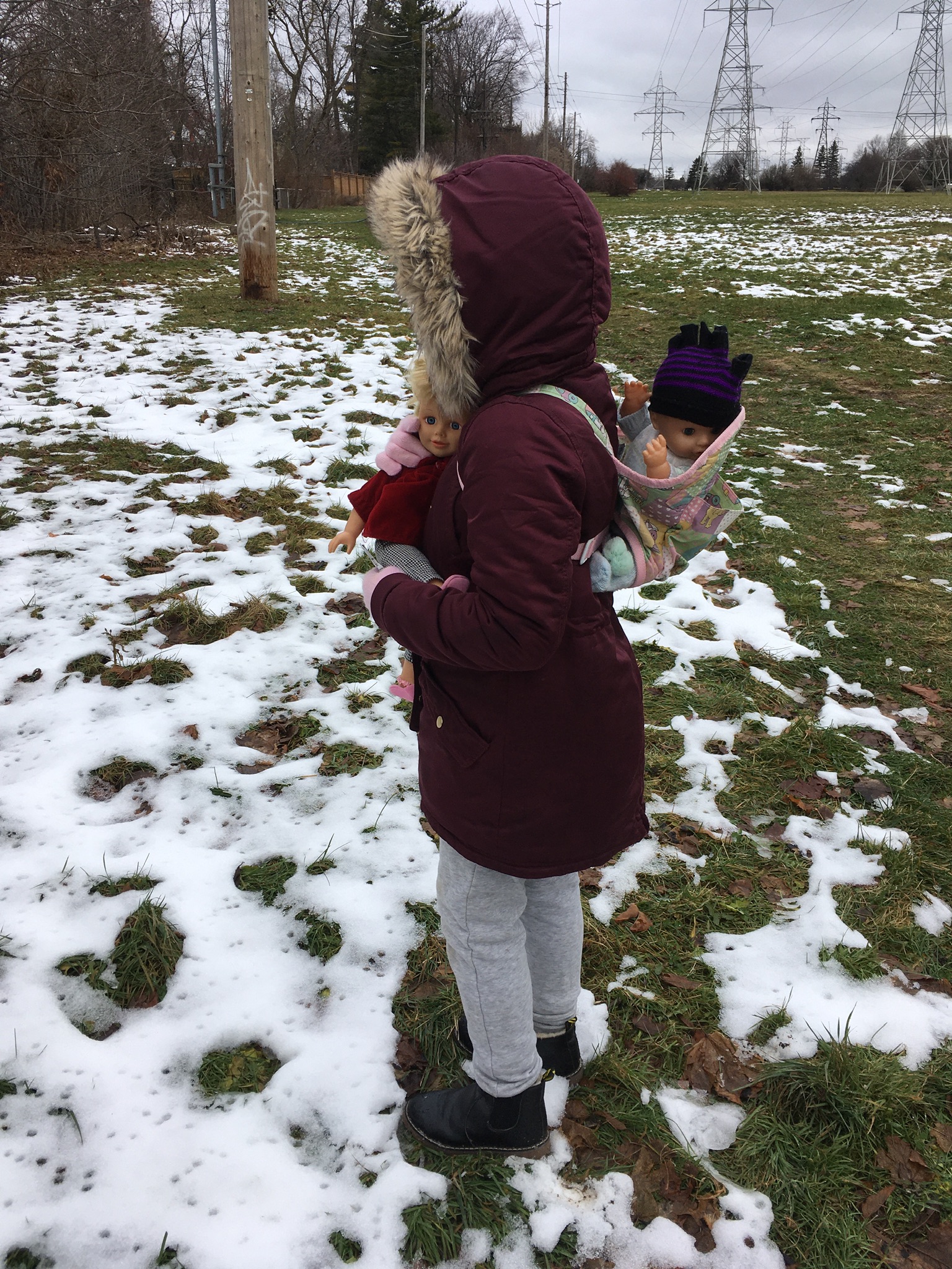 the years. Walks and outdoor play are good bonding time; leave competition and teaching for subtext and enjoy each other’s company. Sports is good but so is discovering nature (yes, in the city: there are plants, birds, insects to discover, science and beauty are all around). Share your interests or the children’s: Eddie Izzard’s “running, jumping, climbing trees…”. There is architecture, neighbours’ homes and gardens, local business streets and their storefronts – interesting, life-learning, community-developing. My ritual of going out to see the day in the morning has been adopted by Indre and Robin and become part of their routine. Wear appropriate clothing: think Sound of Music, play-clothes sewn from old curtains, Inuit children in winter furs; in the summer, sun protection, bare feet when possible, practical hats, silly hats. In the winter there is sometimes snow – nature’s lego – and winter sports, but also ball hockey, outdoor picnics in the park or in the country, nighttime moon- and star-gazing. Sleds, skates and hockeydd sticks are available second-hand, as are roller-skates, baseballs, basketballs and soccer balls. In the summer there is sidewalk chalk and the sprinkler, and at least 47 other outdoor amusements, messy maybe, but cheap and fun. Time outside, from baby napping in the pram, to grandfather sitting with a blanket over his knees, is healthy for the mind and the body, it promotes endorphin release, Vitamin D production, and better sleep. Dogs are said to need (variously) 40 minutes to 2 hours of outdoor exercise each day, so they don’t run rampent about the house chewing slippers. So, then, do children: to get the wiggles out, release negative emotions and healthy endorphins, to use up their physical energy, to tire out their bodies ready for bed.