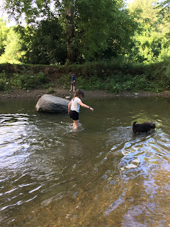 This creek is in the middle of the city.                 Summer and winter we take the dog to the field.