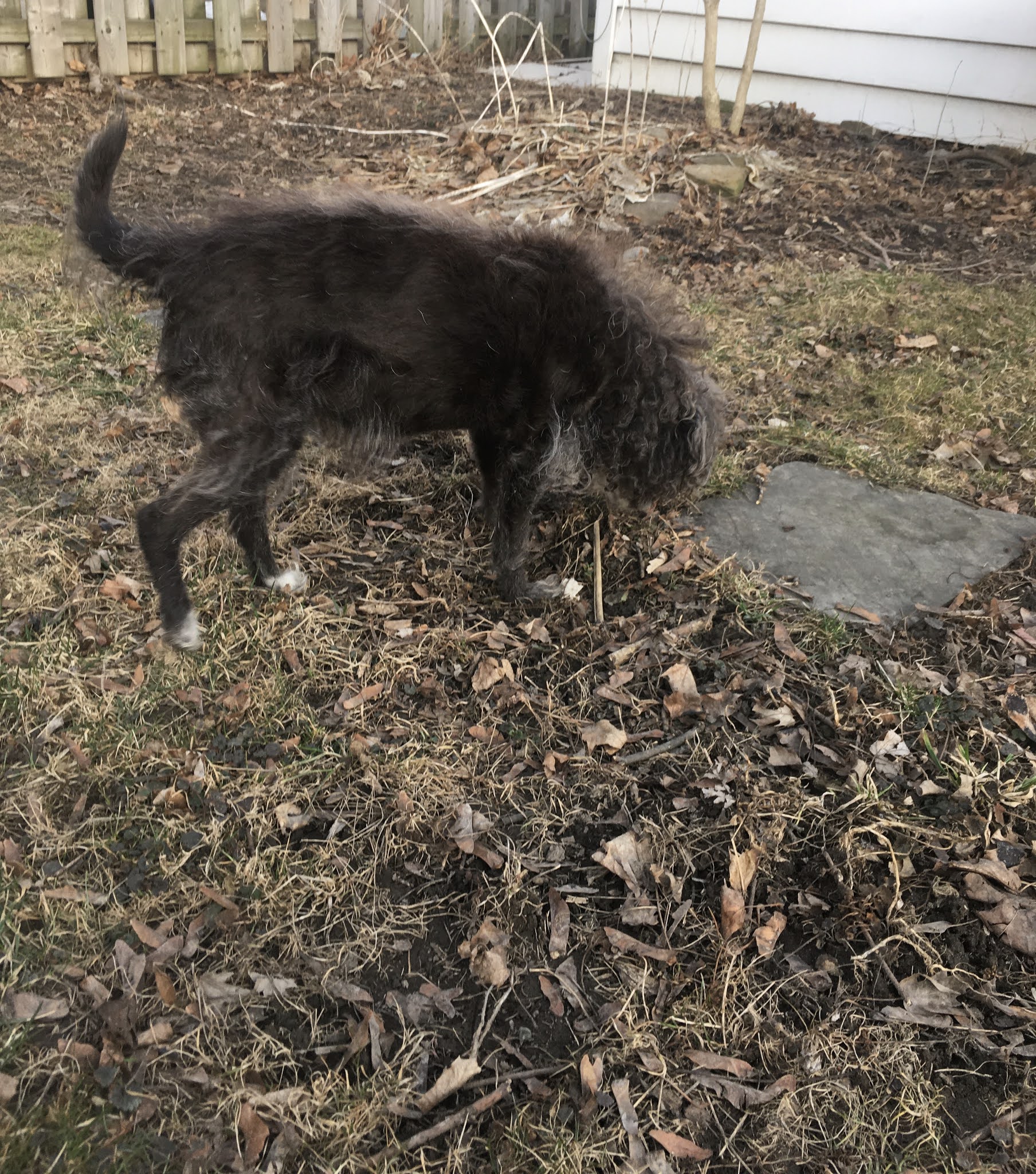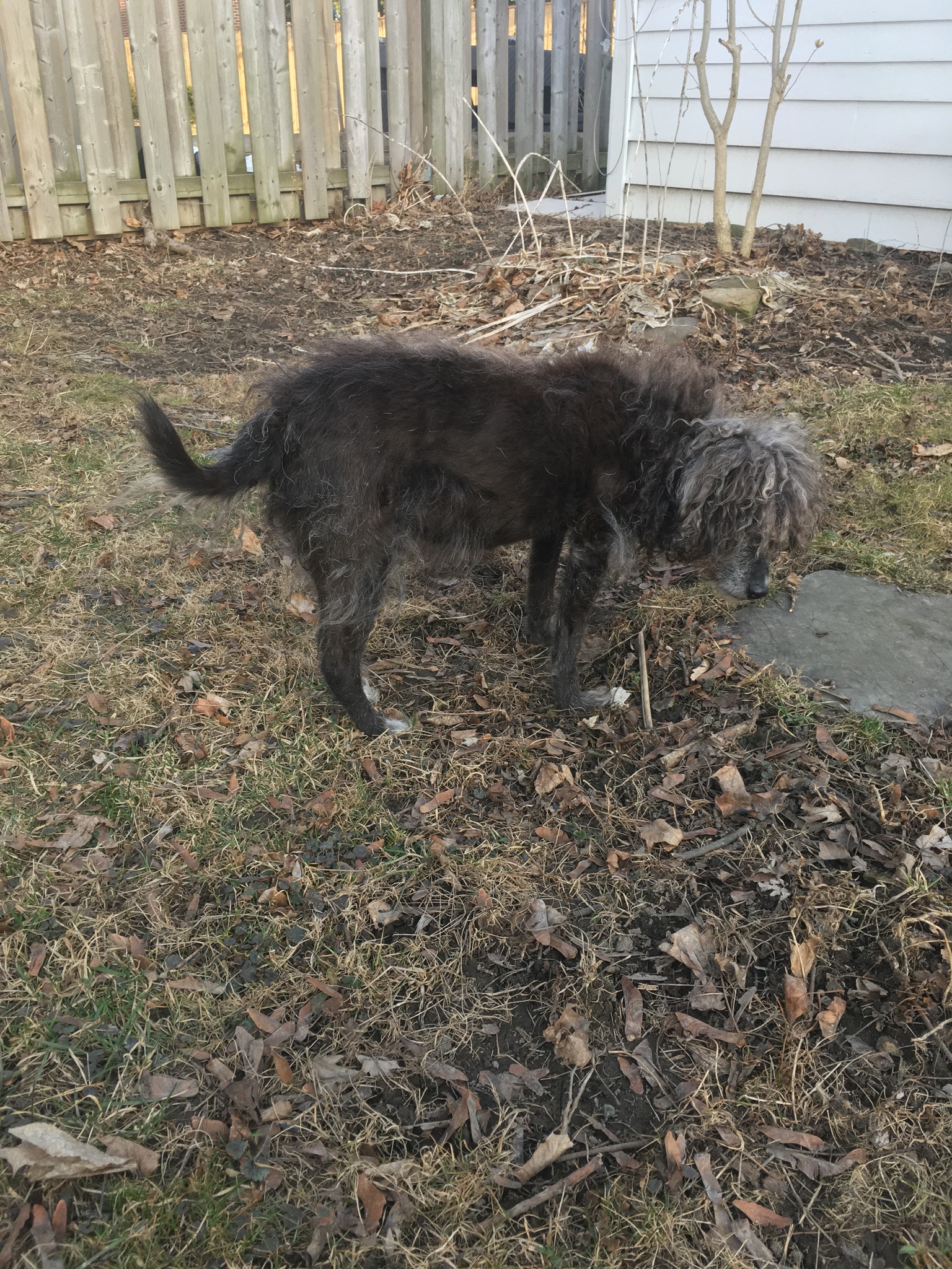 Fig is not well, poor thing. He has cataracts in his eyes! I thought his retinas were detached but the vet couldn’t see past the cataracts. He also has diabetes. This would be manageable if it wasn’t for his already severe heart murmur ( at 5 out of 6, whatever that means – certainly far progressed), which causes congestive heart failure, affecting his breathing. The vet at Martin’s Veterinary Hospital was so helpful and supportive of my decision not to take extreme measures to extend Fig’s life: daily monitoring with blood sampling and insulin injections would add greatly to his stress and ultimately would only prolong his life a short while. We will love him and cherish our days with him as long as he is happy and without pain. He is 12 years old and has lived a good life, given us much joy. He weighs 7 kilos now, down from an overweight 13 kilos a year ago. He has also lost much of his long fur and looks nothing like his former fat fluffy self. He has adapted easily to being here and was so happy to see Indre. I have taken him to the hydro field and he has been right at home sniffing and wandering, meeting other dogs.