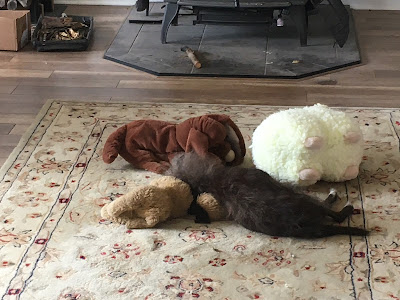 A creature has moved into the wall of K’s room and at 3:30 this morning he heard another in the mud room, so we were up hunting mice in the middle of the night! We saw one in the mud room – it scurried back and forth seeking a place to hide before we lost sight of it and had to abandon the hunt. We have had them in the house all winter but as they have kept quiet and out of our food supplies, we have not bothered to pursue them. Now, however, they are making baby-nests and keeping K awake at night. I do not want to trap or harm them but mice can harbour disease that can impact human health so we may have to address the situation. They do get into Fig’s food dish on the floor and I have found little stashes of dog crunchies in unused dresser drawers and other hiding places. The dresser is unused because the drawers stick. I mean to take some sandpaper to the runners and then wax them with bar soap or beeswax, but it is a long way down my to-do list.