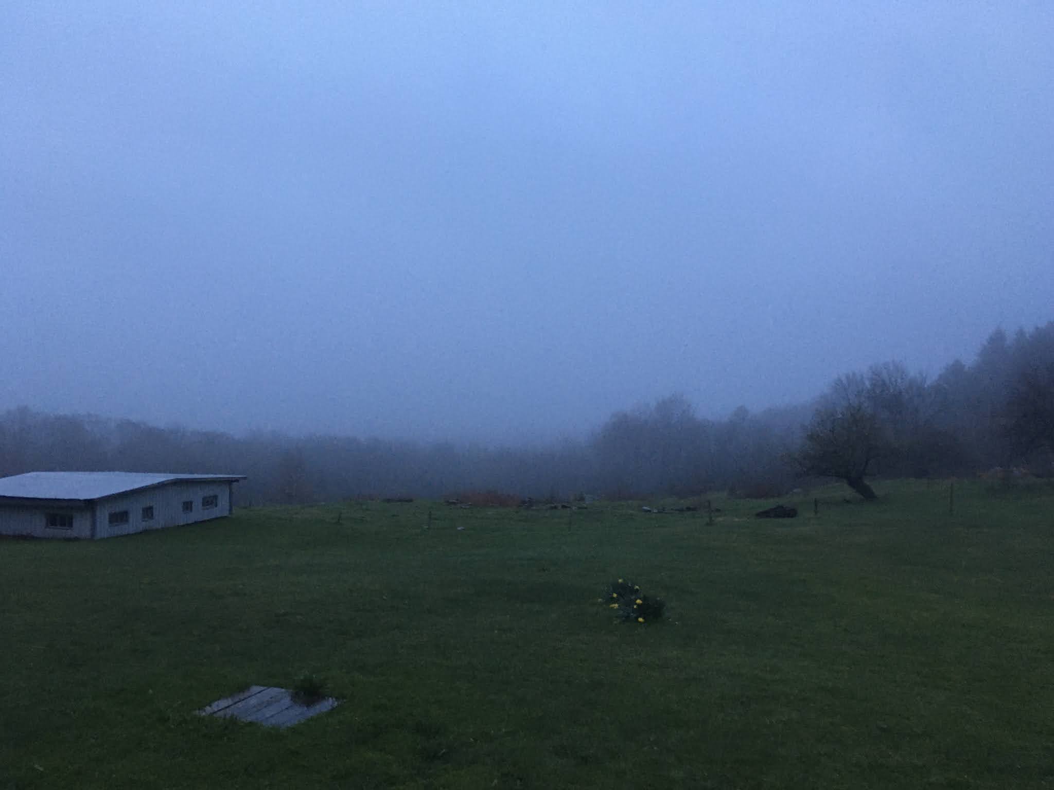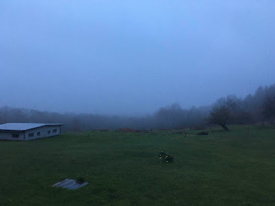 It is raining this morning. I rose just before dawn and the world was gone. When it snows your eye understands it is only that snow is obscuring the southern mountains, but with the drizzling rain invisible, the illusion is disconcerting.