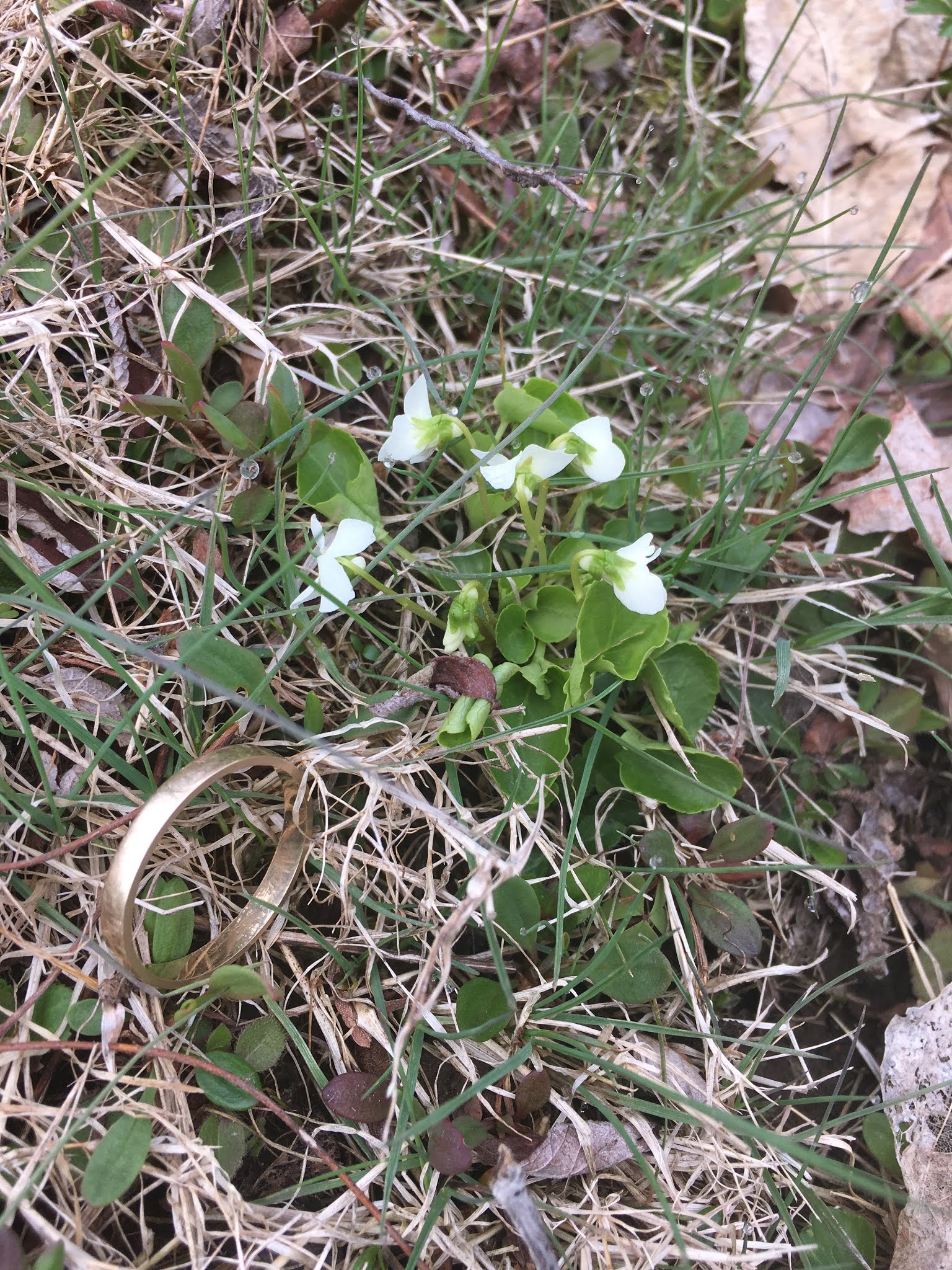 This violet, barely the size of my wedding ring, wastes no time growing big or tall, just tiny leaves, tiny flowers, perfect and delicate.