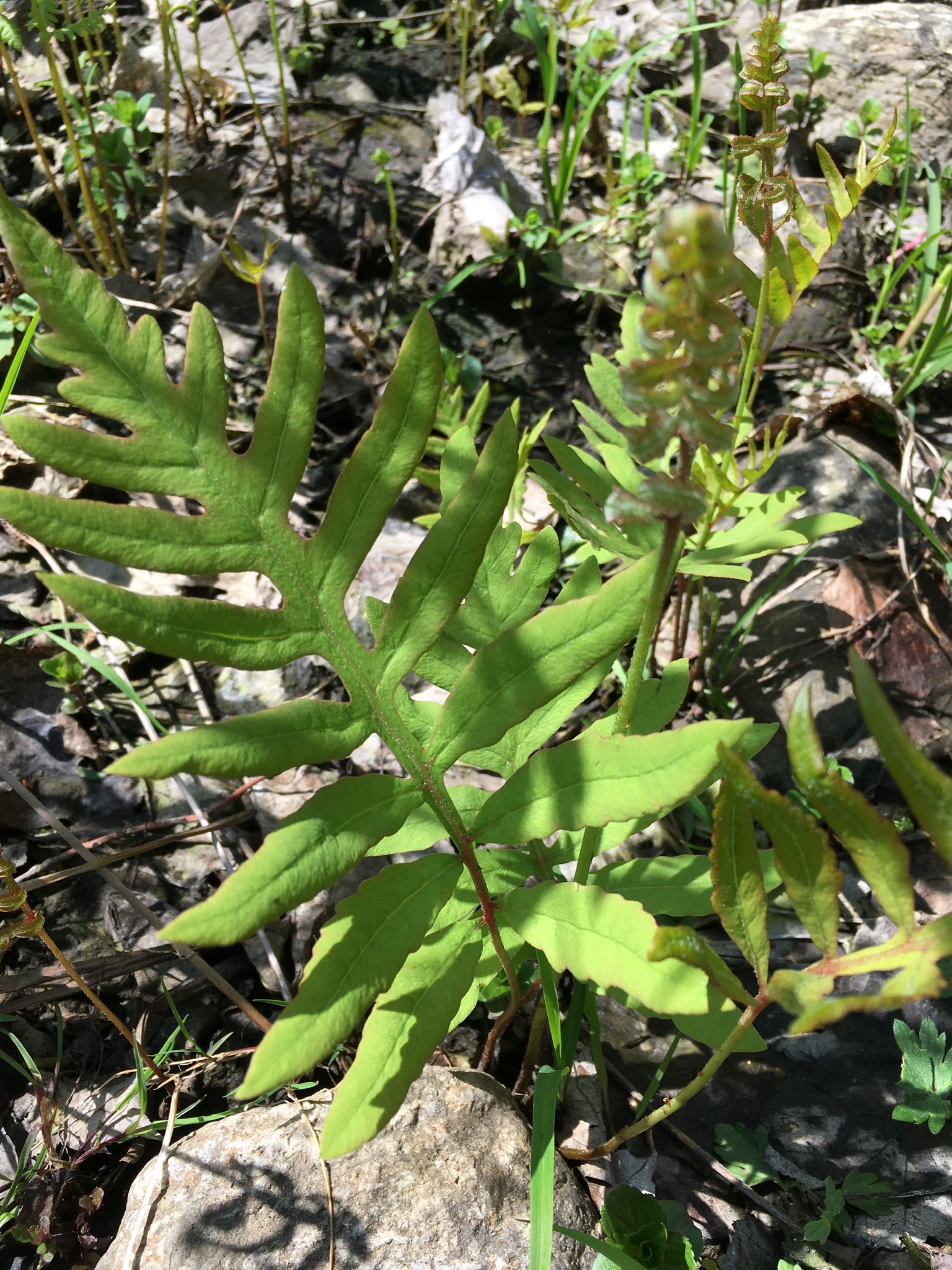 Below, according to my app: the interrupted fern with its spores developing on one section of pinnae.