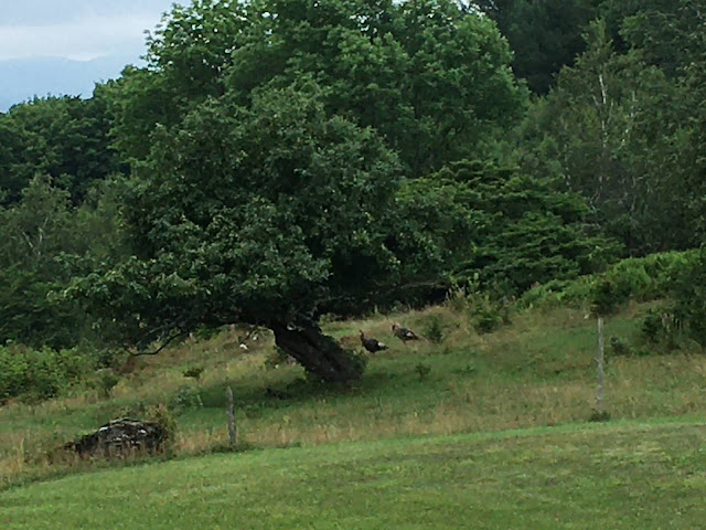 Yesterday there was a haze over the Estrie: there was a smog warning for the area – smoke was blowing from forest fires in northern Ontario. The air was still, and I remembered how there is often a dead stillness before a storm. We almost never get such calm; always a breeze is blowing. The birds had even stopping singing. Sure enough, late in the day thunder began to roll around the valley, low, rumbling and steady. Several brilliant flashes of lightning brought rain at last. This morning new clouds are forming and drifting up like smoke from the hills. There is once again a wind moving the trees and the birds are going about their business. There are beginning to be glimpses of blue in the sky and the maple tree that shades the apron by the house rustles soft then loud; all the trees are stirring as if murmuring to each other.