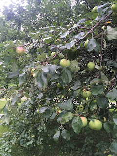 Yesterday I picked the first of the fruit from the property – raspberries, black raspberries and blueberries! It was the first time I have ever harvested anything of my own! Of course they were given freely by the earth; I did nothing towards their development. The bushes are still laden with unripe fruit. There are many patches of blackberries not nearly ripe, but the others will be ripening daily for the next while. The apples are coming along well.