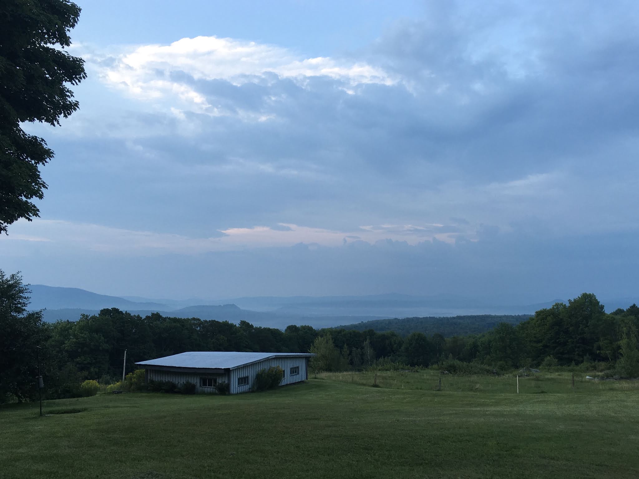 Early morning, the sun has just risen. I gave up trying to sleep, sat on the porch, and watched the stars all night. I saw one falling, and there were faint flashes high in the atmosphere – heat lightning? Haven’t seen it before in my life so far away or so high in the sky.  A couple of late fireflies flashed earthbound on the lawn. At three in the morning an owl who-whoo’d. Silver linings faint in a night sleepless and in pain.