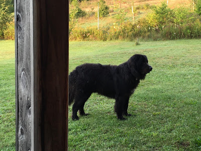 We have walked over to the ridge pond once – it is about a foot down from July. There has been a drought here; many of the residents are without water. Last week’s rain will have helped a little. We are okay just now; our well is holding its own, but we are being thrifty with the water, using small basins for washing, instead of the big sink and I am fortunately not needing numerous hot showers any more.
