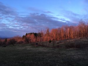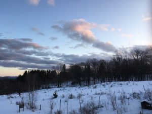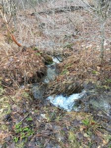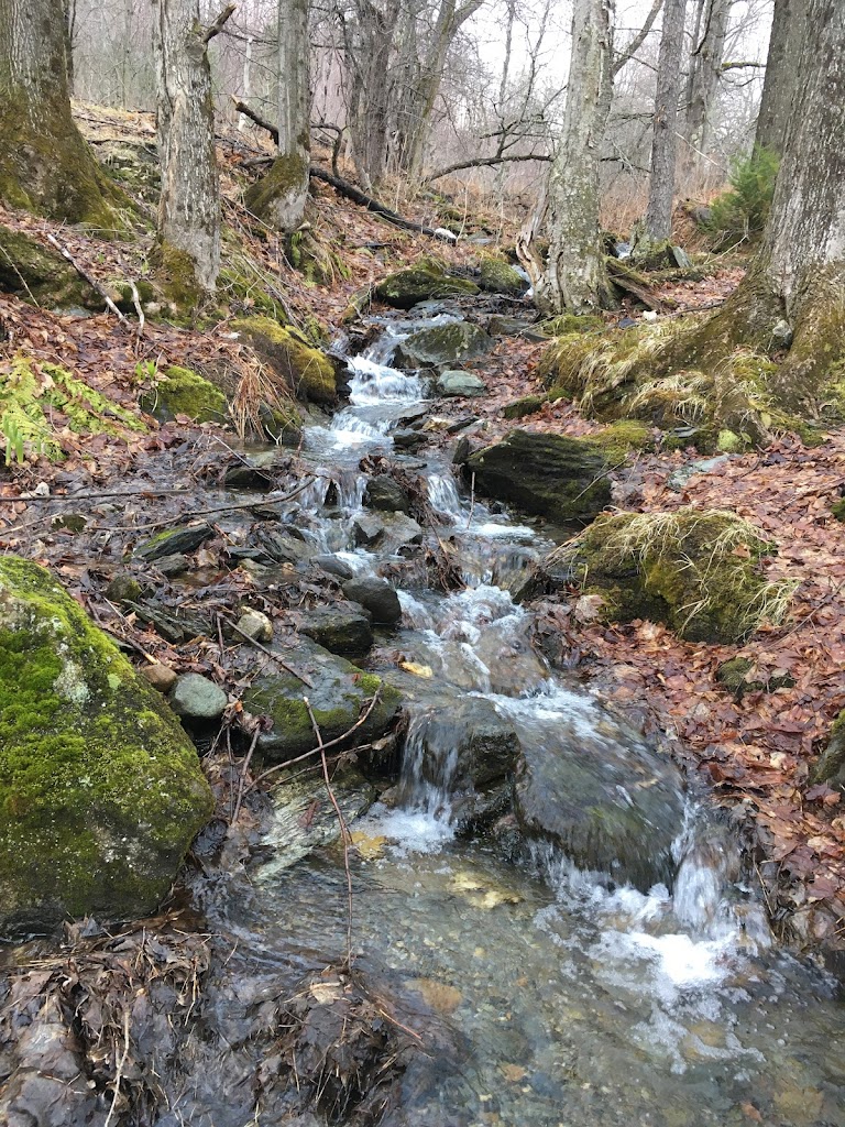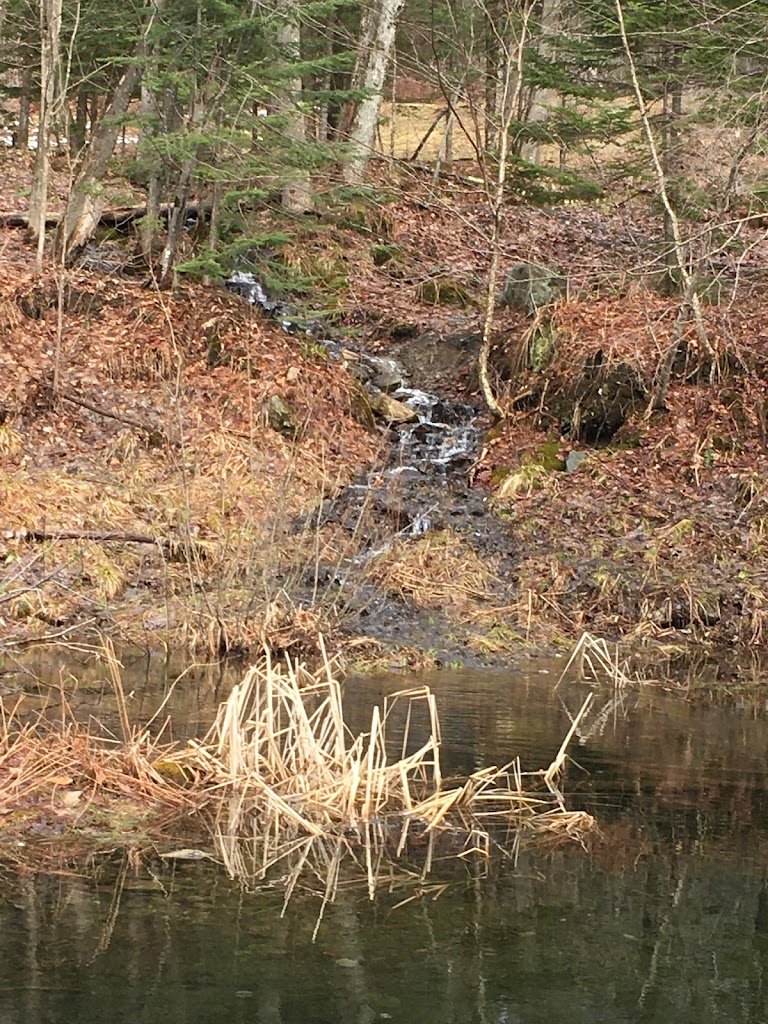 It is the next morning. Rocky and I have done our walk: to the first turn, back to the cow pond and then I wanted to follow the ridge stream down. I am obsessed by the stream, as I am by all the waters that pour down the hills. (Have you noticed?) It is a living thing, following its path, (or destiny) to ground, to the lowest, most stable, level. To the sea. Well, to the Missisquoi River, to Lake Champlain. (The indigenous peoples called them by other names, though “Missisquoi” seems to be derived, corrupted, from an older name. Champlain is, of course, the name of an “explorer”; should read invader. I do not know what they teach for history in Canadian schools any more.) There is such a childish brightness to its hurried pace, the stream, the hundred little falls and steps it runs down, among the tree roots, fallen branches, and stones.