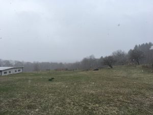 Sunday and Monday then, passed in heavy sadness and waiting and processing. Rain and Tal were under the clouds too. I was with Rain on Saturday, but haven’t seen her again until today. On Tuesday it snowed, and on Wednesday, and blew a blizzard, wet and heavy. We went nowhere, but only walked. Every day Rock and I walk; the last couple of days K came too. The forest was deep in snow again. Wednesday, of course was a last straw, a damaged paw.