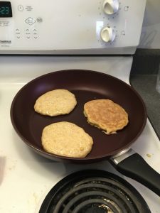 The sourdough chickpea pancakes in the pan.